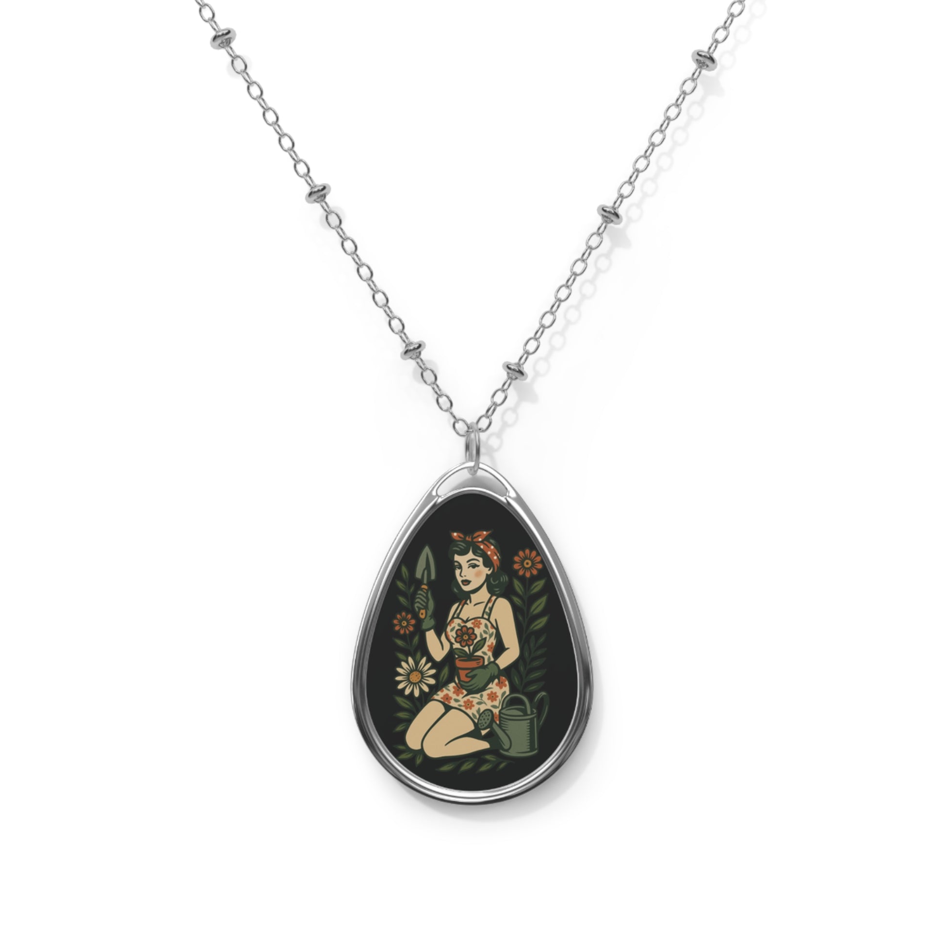 Pin Up Gardener Oval Necklace | Meaningful Jewelry | Inspirational Gift | Recovery Support | Healing Accessory | Gift for Friend